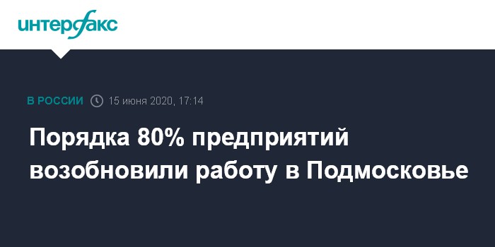 Порядка 80% предприятий возобновили работу в Подмосковье
