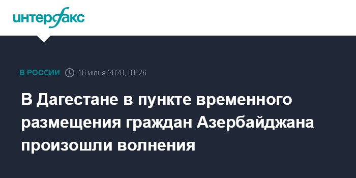 Москва. 16 июня. INTERFAX.RU - Сотрудники регионального управления Росгвардии и МВД в Дагестане прибыли в пункт временного размещения граждан Азербайджана, которые требуют пропустить их через госграницу на родину, сообщил агентству "Интерфакс" в администрации Дербентского района Дагестана.