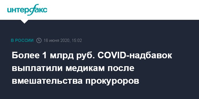 Более 1 млрд руб. COVID-надбавок выплатили медикам после вмешательства прокуроров