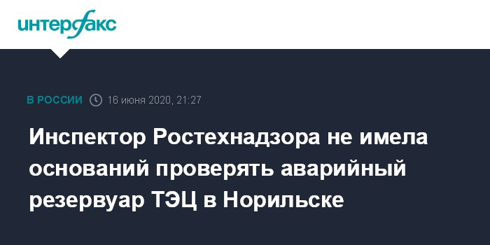 Москва. 16 июня. INTERFAX.RU - Инспектор Ростехнадзора, в отношении которой возбуждено уголовное дело, не имела законных оснований проверять аварийный резервуар на ТЭЦ-3 в Норильске, сообщил "Интерфаксу" пресс-секретарь службы Андрей Виль.