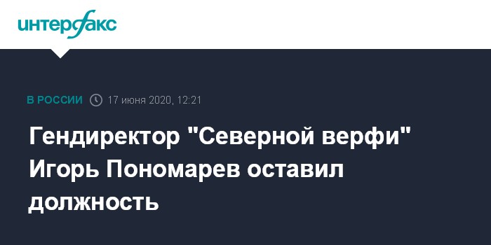 Москва. 17 июня. INTERFAX.RU - Игорь Пономарев оставил пост гендиректора "Северной верфи", сообщили в пресс-службе предприятия. И.о. гендиректора стал Игорь Орлов.