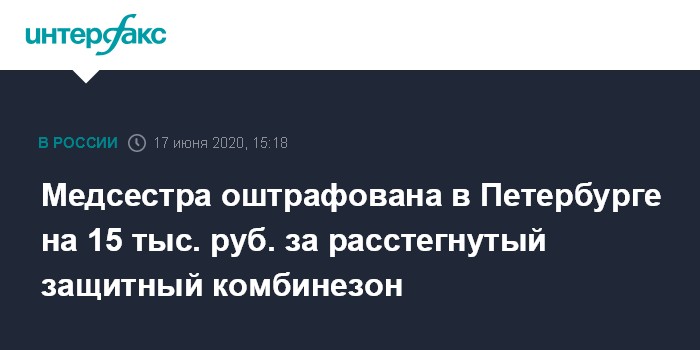 Медсестра оштрафована в Петербурге на 15 тыс. руб. за расстегнутый защитный комбинезон