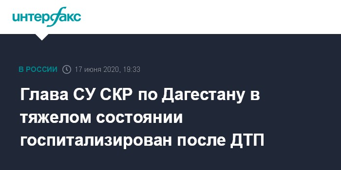 Глава СУ СКР по Дагестану в тяжелом состоянии госпитализирован после ДТП