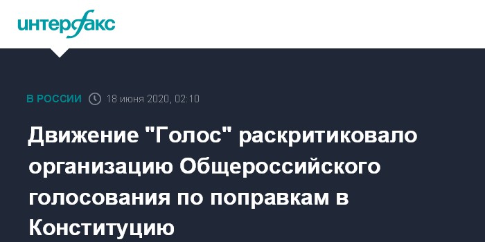 "Общероссийское голосование по изменению Конституции России проходит в ситуации ограничения базовых гражданских свобод, дефицита гарантий защиты прав участников голосования, отсутствия достаточного регулирования агитации и демонстративном игнорировании принципов политической нейтральности и беспристрастности не только со стороны органов власти, но даже системы избирательных комиссий", - резюмировали в "Голосе".