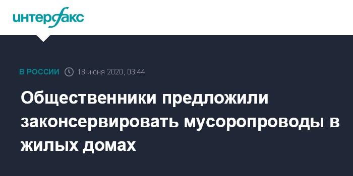 "Общественники предложили законсервировать мусоропроводы во всех многоквартирных домах или в крайнем случае использовать их только для одного вида отходов - к примеру, органических", - говорится в публикации со ссылкой на имеющееся в распоряжении издания письмо Общественной палаты (ОП) РФ, Всероссийского общества охраны природы (ВООП) и Института развития правового общества, направленное в адрес главы Минстроя Владимира Якушева.
