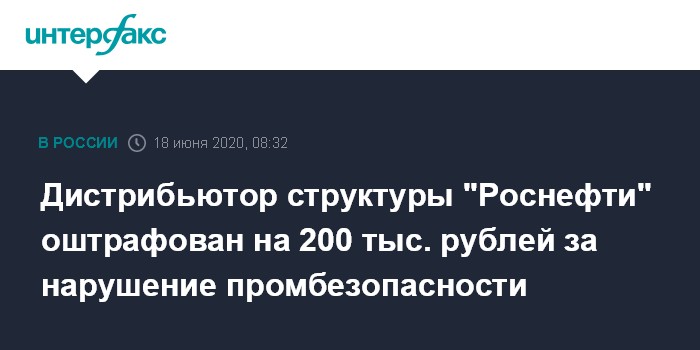 Дистрибьютор структуры "Роснефти" оштрафован на 200 тыс. рублей за нарушение промбезопасности