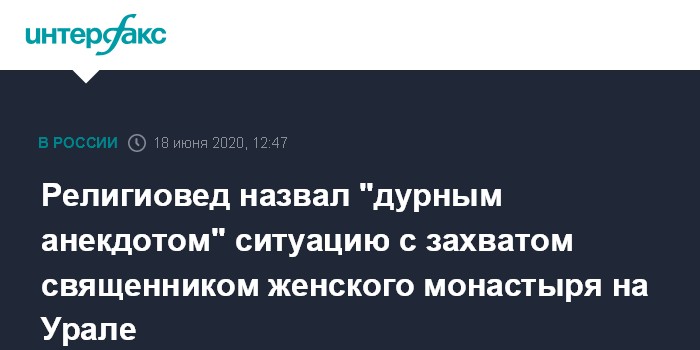 Религиовед назвал "дурным анекдотом" ситуацию с захватом священником женского монастыря на Урале