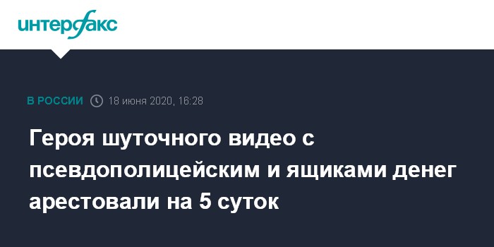 Героя шуточного видео с псевдополицейским и ящиками денег арестовали на 5 суток