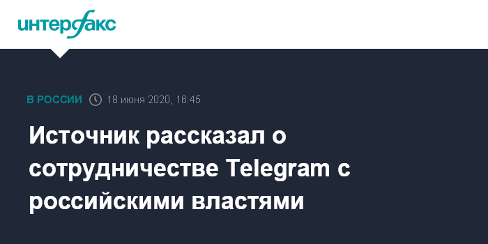 Москва. 18 июня. INTERFAX.RU - Администраторы Telegram не предоставляли российским властям ключей шифрования к своим ресурсам, однако сотрудничают по конкретным запросам в рамках борьбы с экстремизмом и терроризмом, сообщил "Интерфаксу" источник в российских властных структурах.