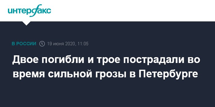 Москва. 19 июня. INTERFAX.RU - В результате непогоды в Петербурге есть погибшие и пострадавшие, сообщили "Интерфаксу" в пятницу в пресс-службе управления МЧС по городу.