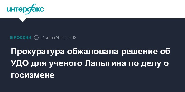 Москва. 21 июня. INTERFAX.RU - Прокуратура оспорила решение Московского райсуда Твери о досрочном освобождении из колонии бывшего сотрудника "ЦНИИмаш" Владимира Лапыгина, осужденного за государственную измену.