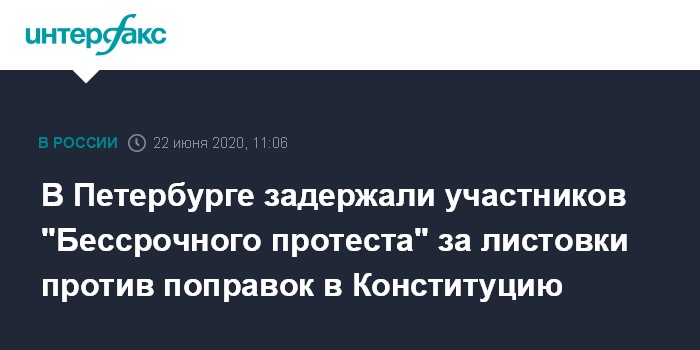 По его данным, накануне Дмитрий Иванов и Максим Кондратьев, члены московского отделения незарегистрированного политического движения "Бессрочный протест", расклеивали на набережной Фонтанки листовки "против власти и поправок в Конституцию РФ".