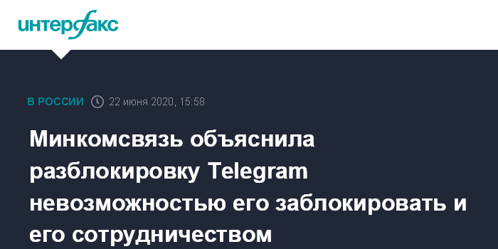 Минкомсвязь объяснила разблокировку Telegram невозможностью его заблокировать и его сотрудничеством