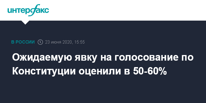 "Все исследования показывают, что диапазон явки будет 50-60%, а голосования "за" - 60-70%. Итоговый результат в значительной степени будет зависеть от структуры явки, кто лучше отмобилизован - сторонники или противники", - сказал Костин во вторник в Москве на "круглом столе" Экспертного института социальных исследований "Историческое решение. Перспективы и прогнозы голосования по поправкам к Конституции России".