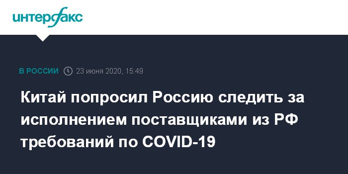 Китай попросил Россию следить за исполнением поставщиками из РФ требований по COVID-19