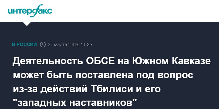 "Все наши попытки организовать создание двух новых миссий ОБСЕ в Грузии и Южной Осетии на справедливой и равной основе, с независимым друг от друга функционированием не увенчались успехом. Грузия при активной поддержке западных стран - участниц ОБСЕ по явно политизированным мотивам отвергла наши компромиссные предложения", - сказал он в интервью журналистам.