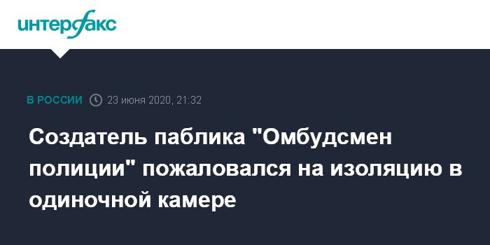 Создатель паблика "Омбудсмен полиции" пожаловался на изоляцию в одиночной камере
