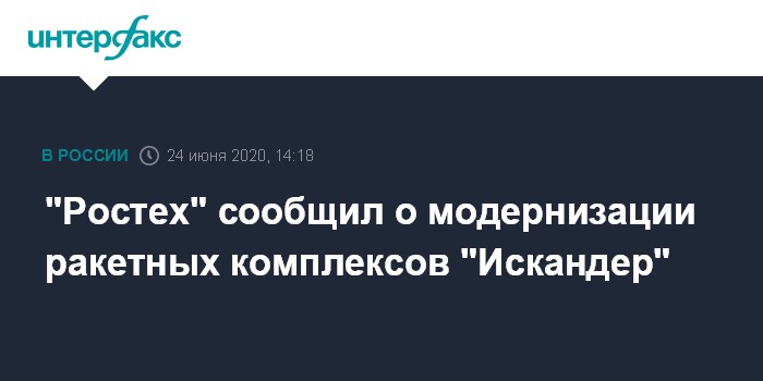 Москва. 24 июня. INTERFAX.RU - В России ведется модернизация комплексов "Искандер-М", они способны прослужить не менее 25-30 лет, сообщил "Интерфаксу" представитель "Ростеха".