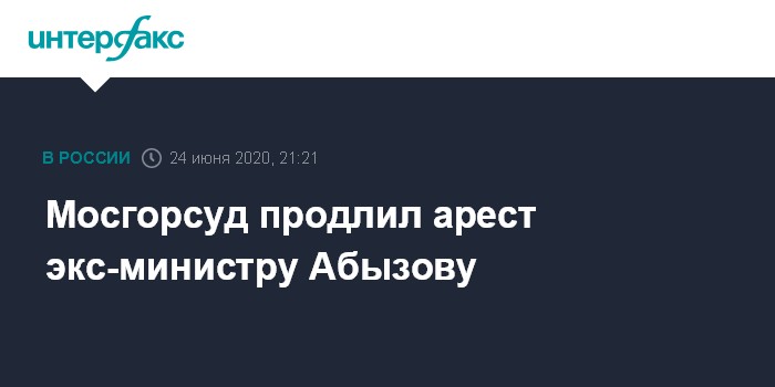 Москва. 24 июня. INTERFAX.RU - Московский городской суд удовлетворил ходатайство следствия о продлении срока содержания под стражей до 25 сентября 2020 года бывшему министру по делам Открытого правительства Михаилу Абызову, обвиняемому в мошенничестве и организации преступного сообщества, сообщили "Интерфаксу" в пресс-службе суда в среду.