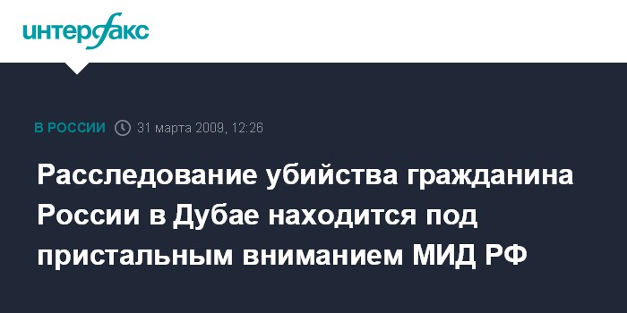 Расследование убийства гражданина России в Дубае находится под пристальным вниманием МИД РФ