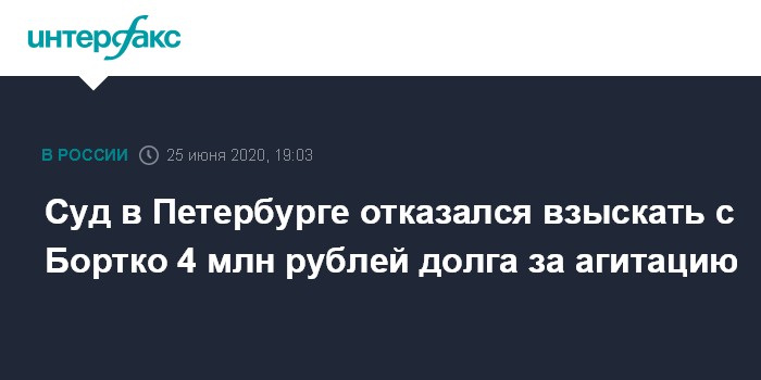 В июне 2019 года Бортко на три месяца заключил с ООО "Реклама-Центр" договор на подготовку и размещение агитационных материалов. Согласно исковому заявлению, фирма обязательства по договору исполняла с июня по август 2019 года, а оплата Бортко проведена только за июнь и июль 2019 года. Сумма задолженности Бортко, по подсчетам компании, превысила 4,1 млн рублей.