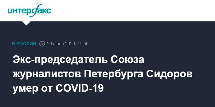 "25 июня ушел из жизни журналист Игорь Александрович Сидоров (22.02.1951 - 25.06.2020). По имеющейся у нас информации, он стал одной из жертв эпидемии COVID-19", - говорится в сообщении.