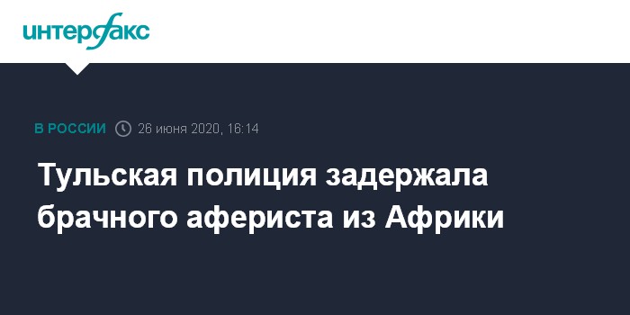 Москва. 26 июня. INTERFAX.RU - Сотрудники правоохранительных органов Тульской области задержали гражданина одной из африканских стран, подозреваемого в мошенничестве, сообщила "Интерфаксу" в пятницу официальный представитель МВД России Ирина Волк.
