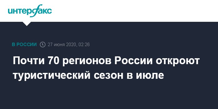 "По мере улучшения ситуации мы будем двигаться по пути смягчения ограничений для туризма. С 1 июля туризм запускается в 67 субъектах РФ и на протяжении первой недели июля ограничения продолжат сниматься. Мы исходим из того, что в первую неделю июля курортный сезон стартует в подавляющем большинстве регионов", - добавила Догузова.