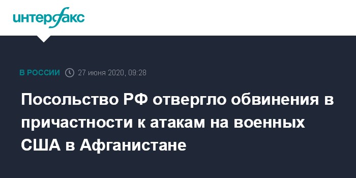 Ранее The New York Times опубликовала статью, в которой сообщала со ссылкой на неназванных американских официальных лиц, что российская военная разведка якобы предлагала талибам вознаграждения за нападения на американских военнослужащих в Афганистане. По информации издания, это происходило в разгар переговоров по мирному урегулированию афганского конфликта.