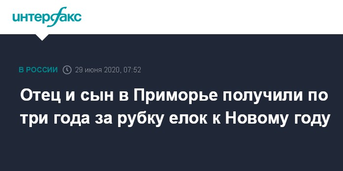 Москва. 29 июня. INTERFAX.RU - Суд в Приморье приговорил двух местных жителей за незаконную вырубку елок к Новому году к реальным срокам лишения свободы, сообщается на сайте прокуратуры Приморья в понедельник.