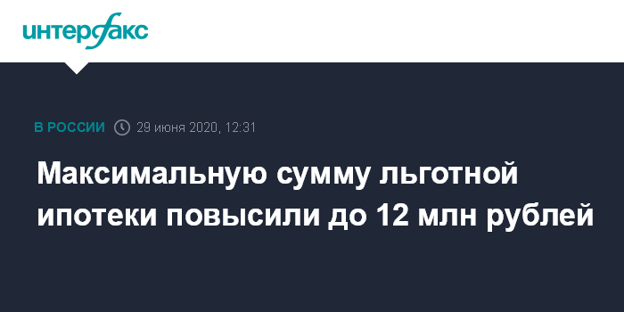 "В рамках нового поручения президента правительство оперативно подготовило изменения в правила выдачи таких кредитов. Постановление уже подписано, максимальная сумма кредита для жителей Москвы, Санкт-Петербурга, Московской и Ленинградской областей увеличена с 8 до 12 млн рублей, а для жителей других регионов - с 3 до 6 млн рублей", - сказал Мишустин.