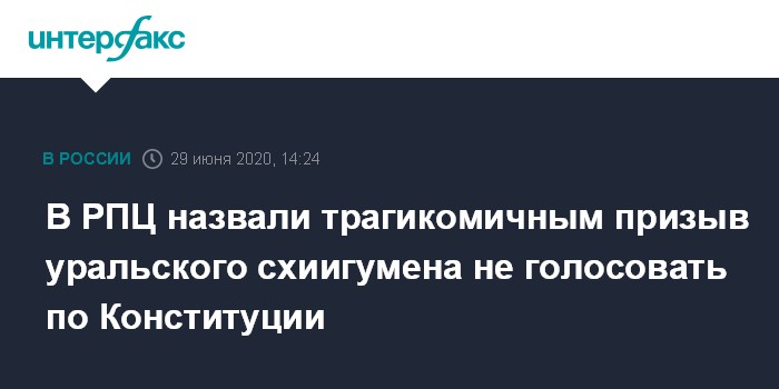 Москва. 29 июня. INTERFAX.RU - В Русской православной церкви считают несерьезными призывы запрещенного в служении схиигумена Сергия (Романова) не участвовать в голосовании по поправкам к Конституции РФ.