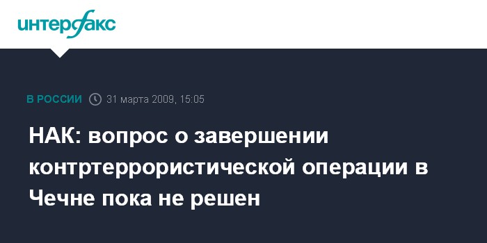 Москва. 31 марта. INTERFAX.RU - Решение о прекращении контртеррористической операции в Чечне еще не принято, заявил "Интерфаксу" представитель Национального антитеррористического комитета (НАК).