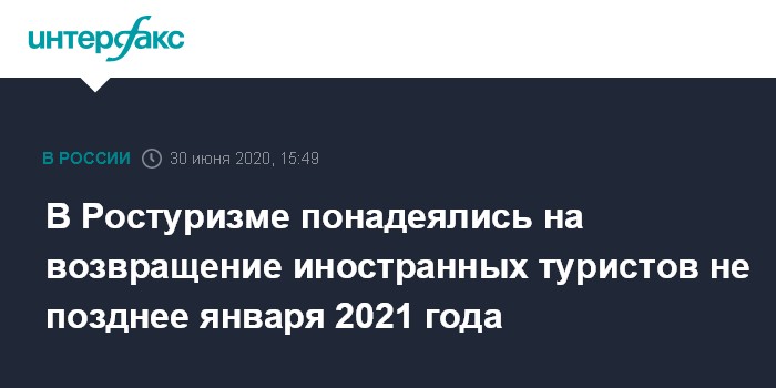 "У нас ключевая мера поддержки для въездного туризма - это старт режима электронной визы с 1 января 2021 года по всей России. Это решение было принято президентом еще в прошлом году, законопроект в стадии реализации, он будет в Госдуме. Планы в силе. Будем надеяться, что эпидемиологическая ситуация будет улучшаться. И, действительно, не позднее 1 января 2021 года мы сможем принять долгожданных иностранных туристов из-за рубежа", - сказала она.