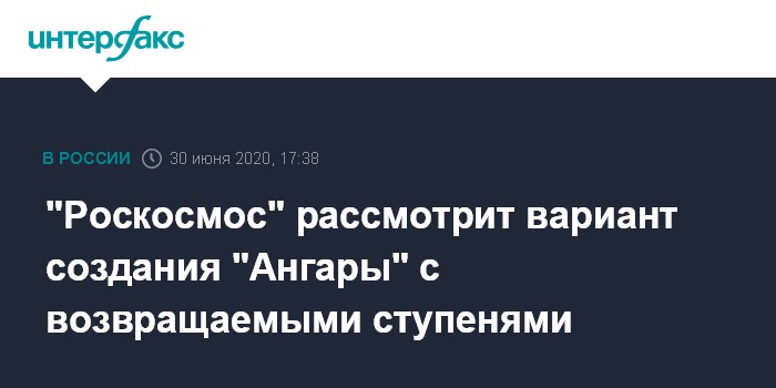Москва. 30 июня. INTERFAX.RU - "Роскосмос" рассматривает вариант создания модификации ракеты-носителя "Ангара-А5ВМ" с многоразовыми ступенями, сообщили в госкорпорации.