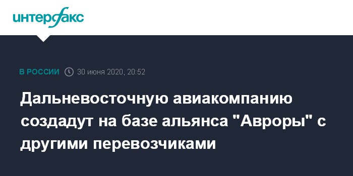 Москва. 30 июня. INTERFAX.RU - Дальневосточная авиакомпания, создать которую поручал президент Владимир Путин, будет представлять собой альянс из существующих региональных перевозчиков, включая "Аврору" (входит в группу "Аэрофлот"), "Якутию" и "Полярные авиалинии".