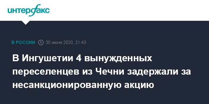 "В середине дня 30 июня 15 вынужденных переселенцев из Чеченской Республики попытались записать видеообращение. Вместе с тем проведение данной акции, содержащей признаки публичного мероприятия, не было согласовано в порядке, установленном Федеральным законом "О собраниях, митингах, демонстрациях, шествиях и пикетированиях", - сказал представитель ведомства.