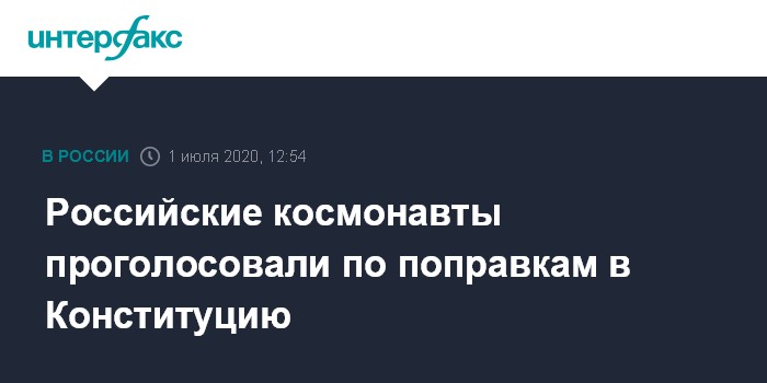 Москва. 1 июля. INTERFAX.RU - Российские космонавты Иван Вагнер и Анатолий Иванишин проголосовали по поправкам в Конституцию РФ с использованием средств связи американского сегмента Международной космической станции.