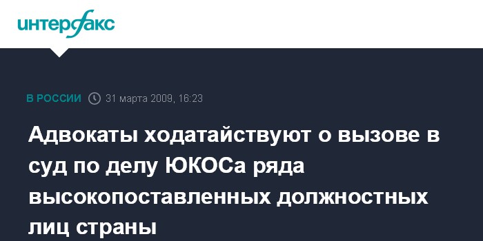 Москва. 31 марта. INTERFAX.RU - Адвокаты Михаила Ходорковского и Платона Лебедева ходатайствуют о вызове в суд в рамках второго уголовного дела бывших руководителей "ЮКОСа" (РТС: YUKO) ряда высокопоставленных должностных лиц страны.