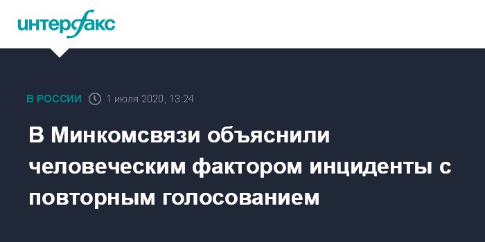 Москва. 1 июля. INTERFAX.RU - Возможность повторного голосования по поправкам к Конструкции с применением онлайн-способа могла возникать из-за человеческого фактора, для исключения этого необходима четкая работа членов участковых комиссий, заявил глава Минкомсвязи Максут Шадаев.