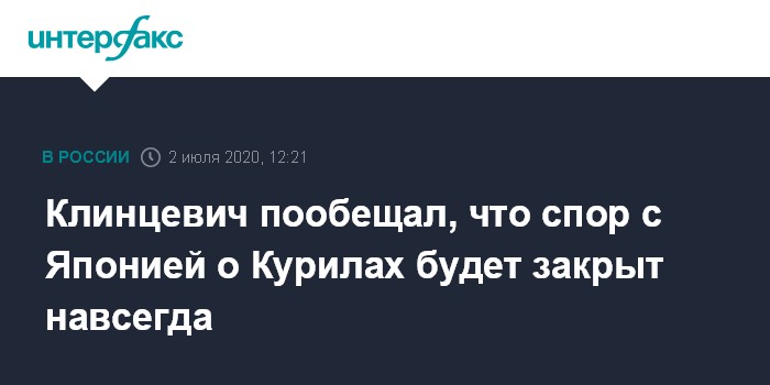 Москва. 2 июля. INTERFAX.RU - Россия никогда не передаст Курильские острова Японии, эта тема будет закрыта после вступления в силу обновленной Конституции, заявил член комитета Совета Федерации по обороне и безопасности Франц Клинцевич.