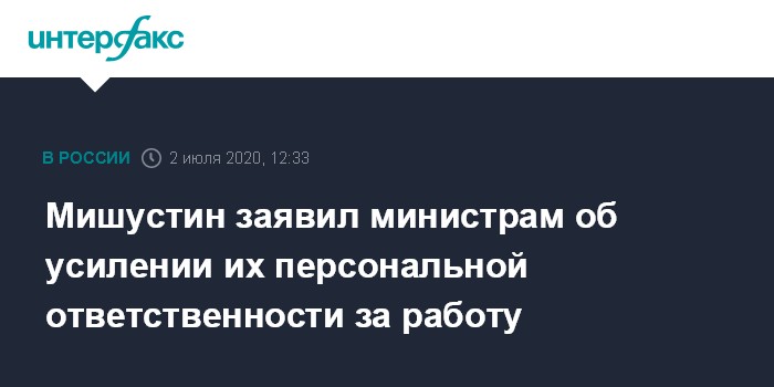 Мишустин заявил министрам об усилении их персональной ответственности за работу