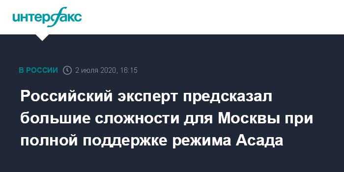 Российский эксперт предсказал большие сложности для Москвы при полной поддержке режима Асада