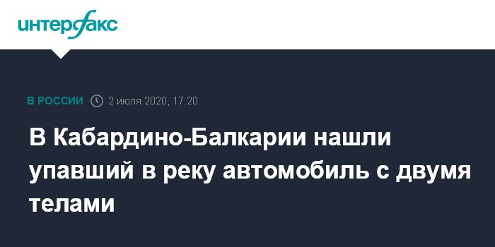 Москва. 2 июля. INTERFAX.RU - Спасатели в Кабардино-Балкарии нашли автомобиль, упавший в реку во вторник, в машине найдены два тела. Об этом сообщили в ГУ МЧС России по КБР.
