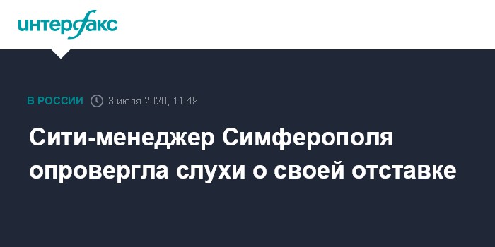 Москва. 3 июля. INTERFAX.RU - Глава администрации Симферополя (Крым) Елена Проценко опровергла сообщения телеграм-каналов о ее скорой отставке.
