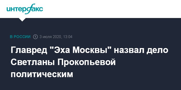 Москва. 3 июля. INTERFAX.RU - Главный редактор "Эхо Москвы" Алексей Венедиктов назвал политическим уголовное дело псковской журналистки Светланы Прокопьевой, которую судят по обвинению в оправдании терроризма.