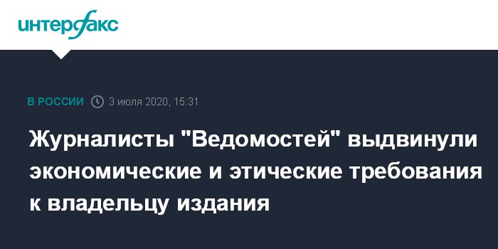Также она требует гарантировать, чтобы решение о публикации статей принималось с участием профильного редактора; гарантировать, что юридическую экспертизу и оценку рисков от публикаций будут проводить штатные юристы издания; закрепить в трудовых договорах право на свободное посещение офиса и удаленной работы; гарантировать, что условия трудовых договоров не будут пересмотрены в сторону ухудшения и продлить режим самоизоляции сотрудников до 31 августа.