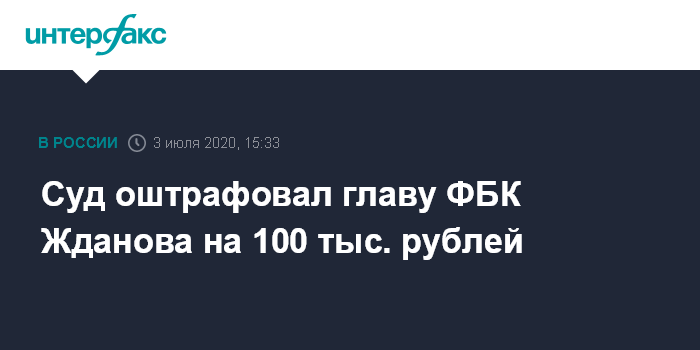 Москва. 3 июля. INTERFAX.RU - Симоновский суд Москвы оштрафовал на 100 тыс. рублей директора Фонда борьбы с коррупцией (ФБК) Ивана Жданова из-за отсутствия в инстаграме фонда маркировки "иностранный агент", сообщили "Интерфаксу" в суде в пятницу.