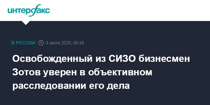 "Я уверен, что мое дело будет расследоваться по закону. Уверен, что российское правосудие правильно оценит ситуацию и все будет хорошо", - цитирует пресс-служба слова Зотова, который уже покинул СИЗО.