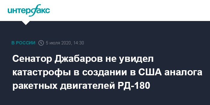 Сенатор Джабаров не увидел катастрофы в создании в США аналога ракетных двигателей РД-180